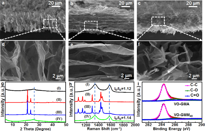 Figure1. 具有不同微观结构的40 μm厚的石墨烯薄膜 (GMM40) 的表征