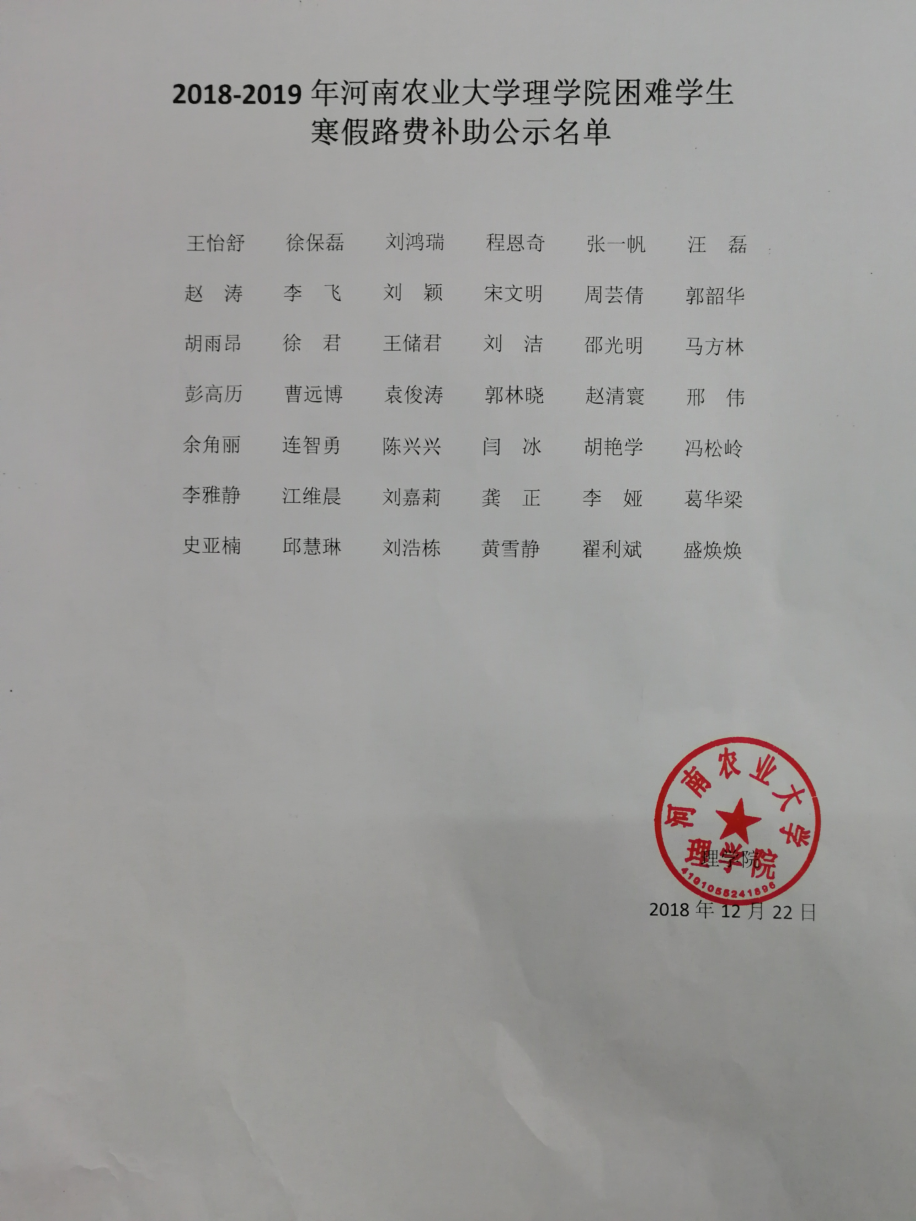 2018-2019年国产无码 困难学生寒假路费补助公示名单