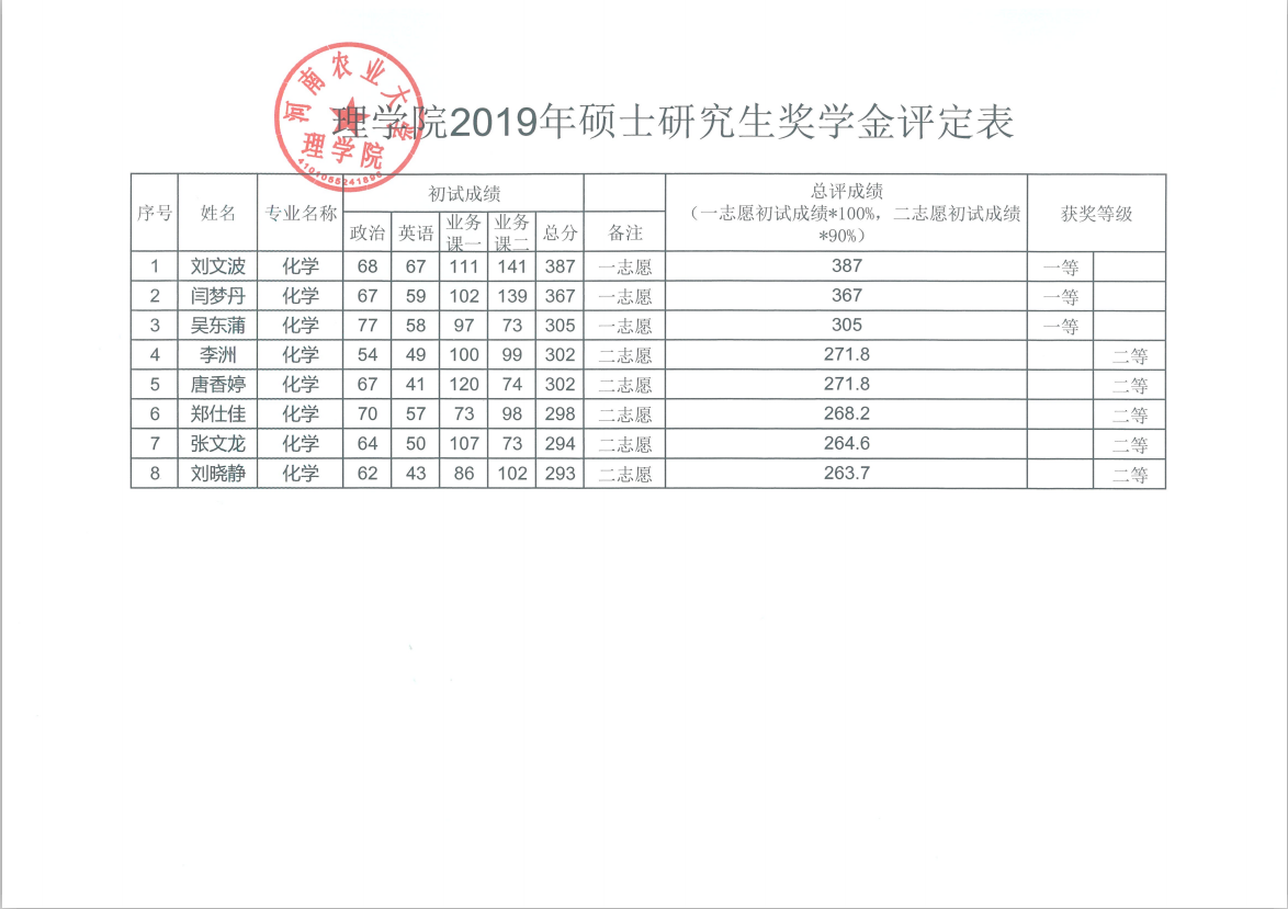 关于国产无码 2019级硕士研究生学业奖学金名单的公示