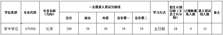 | 13 | 104662010123358 | 王兰婷 | 化学 | 无机化学 | 67 | 52 | 86 | 85 | 290 |