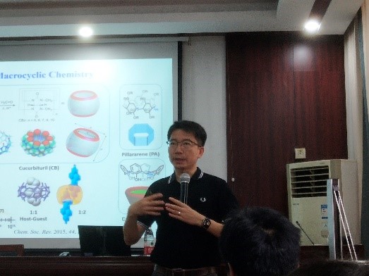 王瑞兵教授首先向我们介绍了澳门的一些风土人情以及澳门大学的创建及地理位置。接着他讲述了课题组开发了一种简便的、生物正交的超分子细胞搭便车式给药策略(纳米药物与活细胞通过超分子作用”牵手”),用以构建基于细胞的药物递送系统。该课题组通过小鼠炎症模型的研究证明,连接在超分子巨噬细胞表面的纳米药物被炎症趋向性驱动富集炎症组织部位并逆转了炎症的进展,超分子细胞递送化疗药物与anti-PDL1联合用药极大的增效了小鼠黑色素瘤的免疫治疗效果,细胞内超分子组装纳米药物对搭便车细胞递送效率以及对肿瘤靶向治疗时的积极影响。首次提出了“超分子工程化细胞制剂”(或“超分子细胞”制剂)的概念,用于靶向递送药物用于炎性疾病(包括炎性实体瘤)的诊疗。