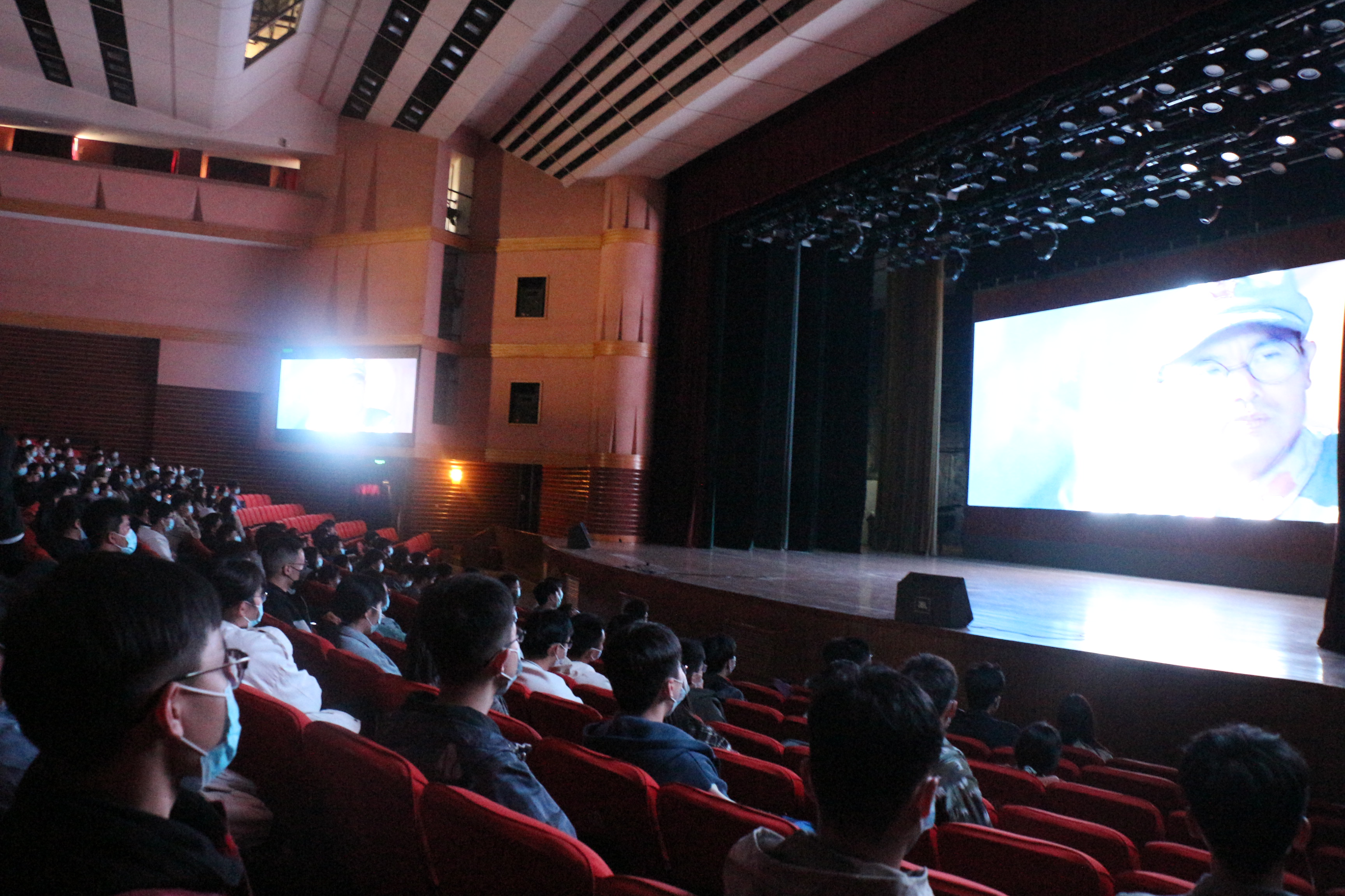 于文化路校区大礼堂组织师生党员和新生观看爱国电影《大会师》。