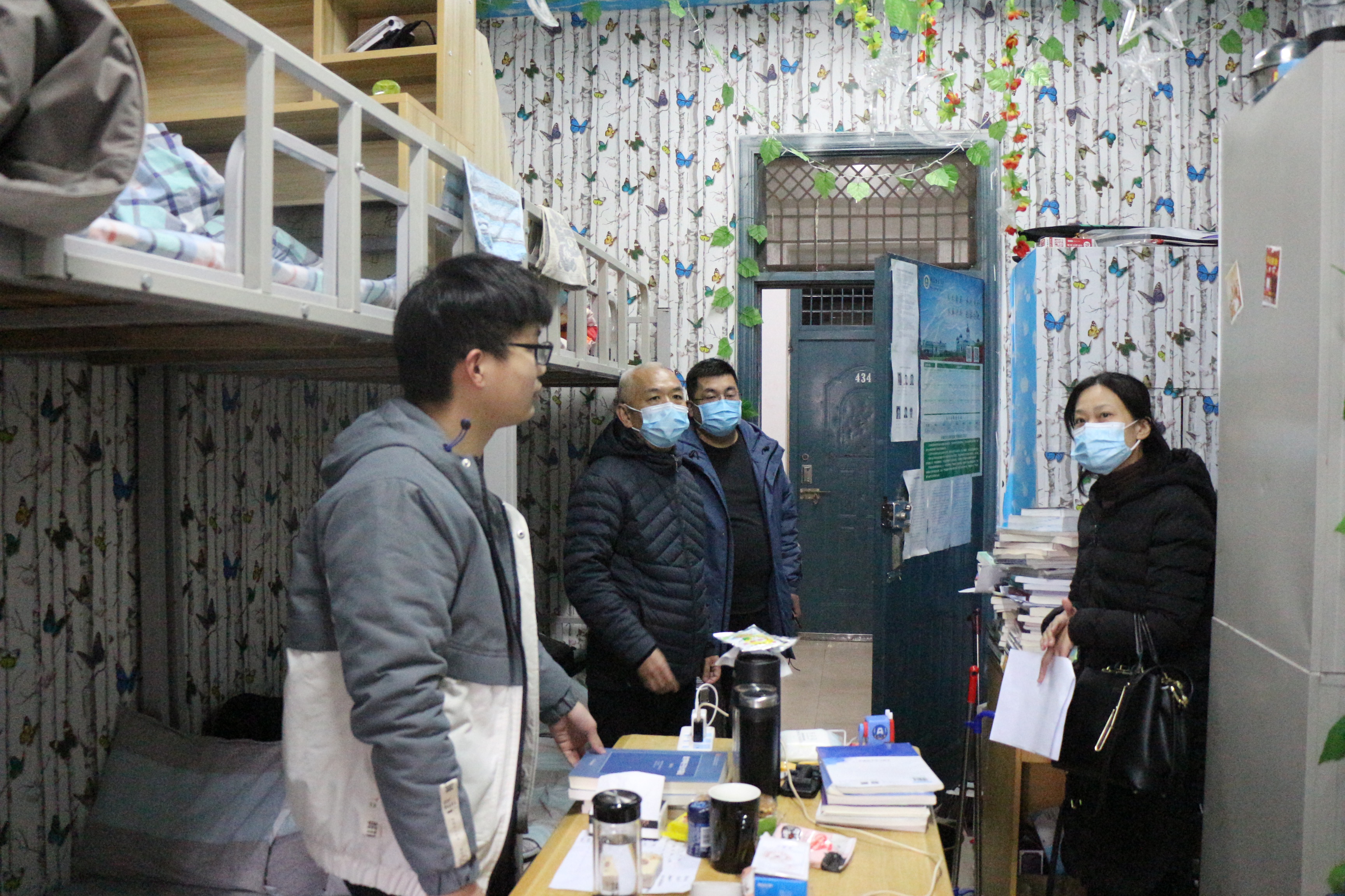 下午4时,学院领导兵分两路到学生宿舍看望返校学生,叮嘱同学们平时要对宿舍进行正确消杀,养成良好的卫生习惯,主动做好每天的体温检测。同时,嘱咐同学们利用好开学前的时间,尽快调整学习生活状态,以最好的姿态迎接新学期。