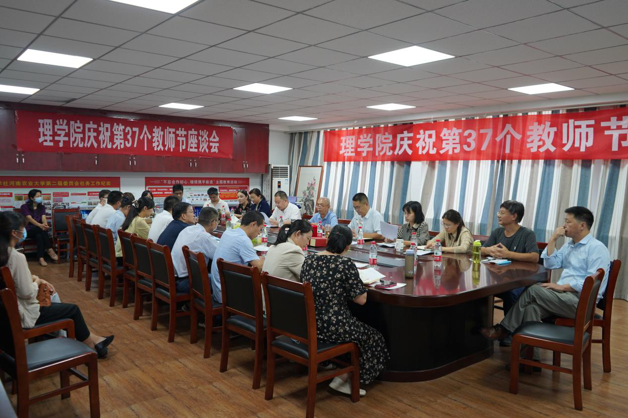 在文化路校区20号楼415会议室召开庆祝第37个教师节座谈会。学院全体班子成员出席座谈会,正科级干部、各系室主任,获奖教师代表参加会议。座谈会由党委书记侯金超主持。
