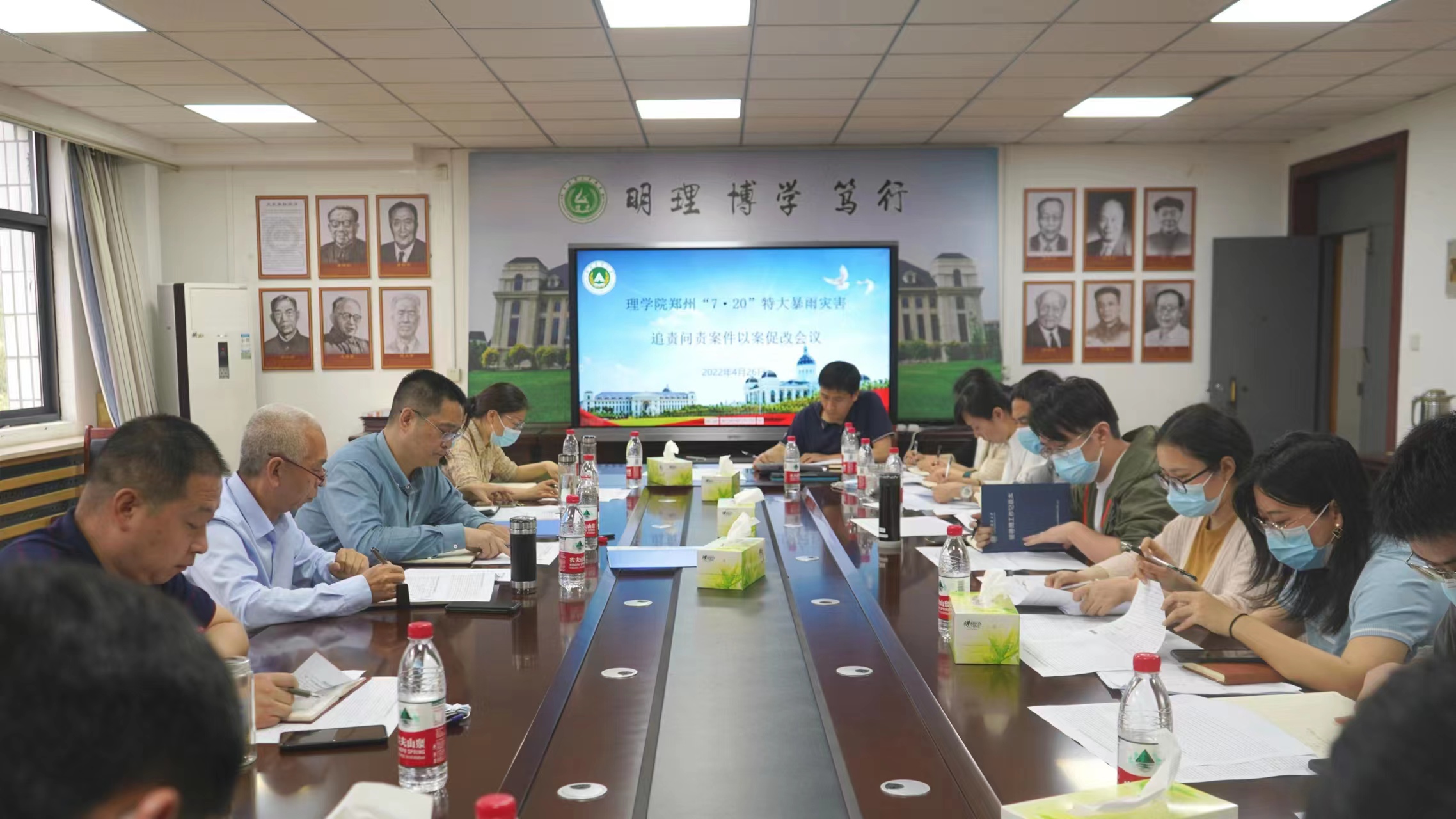 在20号楼415会议室召开了郑州“7·20”特大暴雨灾害追责问责案件以案促改工作推进会,学院班子成员、系(室)主任、班主任参加会议。