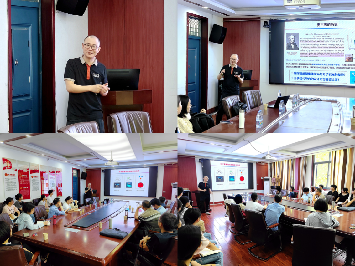 赵征教授从聚集体科学基本理论出发,深入解释了分子聚集如何影响材料发光行为,讲解了聚集诱导发光(AIE)材料的结构-性质关系,分享了分子内振动受限,自由基发光等方面最新研究进展。随后,向我们介绍了课题组在高对比度活体成像材料及其应用方面的研究工作,包括聚集诱导发光材料新结构的设计以及它们在高对比度光学成像、光热抗肿瘤/抗菌、手术导航等方向的应用。整个报告从AIE机理,AIE分子设计讲到AIE材料的医学应用,内容丰富,深入浅出,充满了独特而深入的见解,让人耳目一新印象深刻。