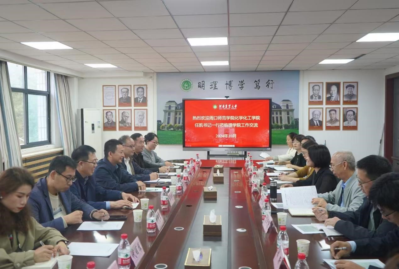 任凯书记对国产无码 的热情接待表示感谢,并详细介绍了周口师范学院化学化工学院的基本情况。随后双方围绕科学研究、高水平师资培养、实验室安全与管理等方面进行了热烈交流和讨论。