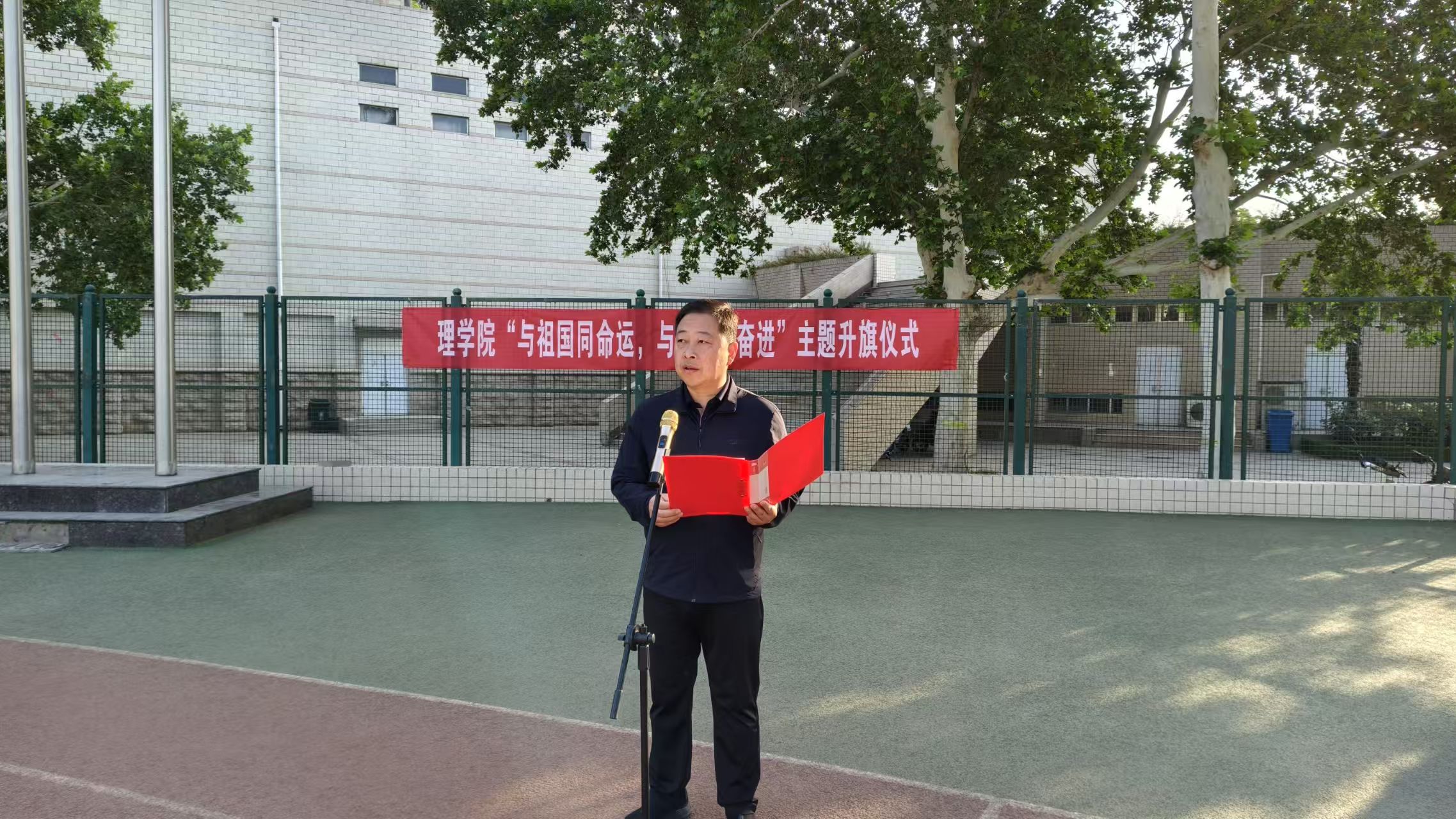 在激昂的音乐声中,国旗护卫队迈着整齐有力的步伐,护卫五星红旗庄严入场。全体师生神情肃穆,在雄壮的国歌声里,五星红旗冉冉升起、迎风飘扬,大家满怀崇敬行注目礼并高唱国歌。随后,副院长李辉发表讲话。他强调,在时代发展的浪潮中,同学们肩负着重要使命,应勇担时代重任,以“强农兴农”为己任,积极投身于学校“双一流”建设,用实际行动贡献青春力量,以青春赴使命,书写未来的精彩华章。最后,24级电科一班马又一作为学生代表进行了发言。他表示,个人的青春力量应融入农大发展大局,同学们要用青春和汗水、智慧和创新助力学校“双一流”建设。以青春为笔,以奋斗为墨,在农大这片沃土上书写属于当代青年的绚丽篇章。